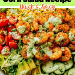 A vibrant and flavorful Blackened Shrimp and Corn Salad featuring spicy seasoned shrimp, charred corn, fresh vegetables, and a zesty cilantro lime dressing perfect for a light and healthy meal.