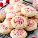 - Add Candy Cane Kisses: After baking, let the cookies cool for 5 minutes, then immediately press an unwrapped Hershey’s Candy Cane Kiss in the center of each cookie to create a festive topping.