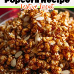 - Coat popcorn: Immediately pour the caramel over the popcorn and toss to coat evenly. Sprinkle slivered almonds on top and toss again until caramel begins to cool and harden.