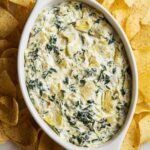 - Serve warm: Serve the warm spinach artichoke dip with tortilla chips, crackers, or toasted baguette slices for dipping.