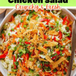 A vibrant and crunchy Thai Chicken Salad packed with fresh vegetables, shredded chicken, and a flavorful ginger-sesame dressing, perfect for a light and healthy meal.