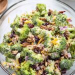 I don’t recommend freezing this Easy Broccoli Salad with Bacon and Cheddar Recipe because the texture of raw broccoli and the creamy dressing can change and become watery or mushy once thawed. It’s best enjoyed fresh or refrigerated.