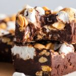I don’t usually reheat the fudge since it’s meant to be enjoyed cold or room temperature, but if you like it softer, leaving it at room temperature for 20 minutes or so does the trick. Avoid microwaving, or it can become oily and lose that perfect Rocky Road texture.
