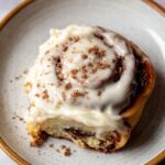 After they’ve completely cooled, store leftover eggnog cinnamon rolls in an airtight container at room temperature for up to 2 days. Beyond that, I suggest refrigerating them to keep the cream cheese icing from spoiling, but bring them back to room temp before eating for the best texture.