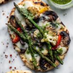 Delicious grilled vegetable naan pizzas topped with fresh mozzarella and a vibrant homemade chimichurri sauce. Perfect for a flavorful and healthy meal that combines smoky grilled veggies with soft naan bread and a zesty herb sauce.