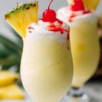 The key is using frozen pineapple chunks and cream of coconut, then blending just enough to combine everything smooth without over-blending ice. Avoid using too much regular ice or letting the drink sit too long before serving.