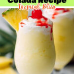 A tropical and creamy Pina Colada recipe made with cream of coconut, pineapple juice, and frozen pineapple chunks, blended to a smooth and refreshing drink perfect for any occasion.