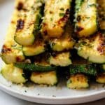 I don’t usually freeze baked zucchini because it can get a bit watery once thawed, but if you want to, flash-freeze the wedges on a baking sheet first, then transfer to a freezer-safe bag. Thaw slowly in the fridge and finish under the broiler to re-crisp.