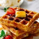 I’m pretty classic about my favorite waffle toppings: a generous smear of softened butter immediately after cooking, a drizzle of pure maple syrup, and a light dusting of powdered sugar. But I’ve also loved adding fresh strawberries or blueberries and a dollop of whipped cream on special mornings. Sometimes, on weekends, we go all out with melted chocolate or even a scoop of vanilla ice cream—it’s like dessert for breakfast!