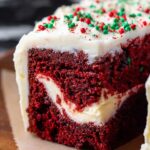 - Decorate Cake: Spread the cream cheese frosting evenly over the cooled cake. Decorate the top with Christmas sprinkles for a festive touch.