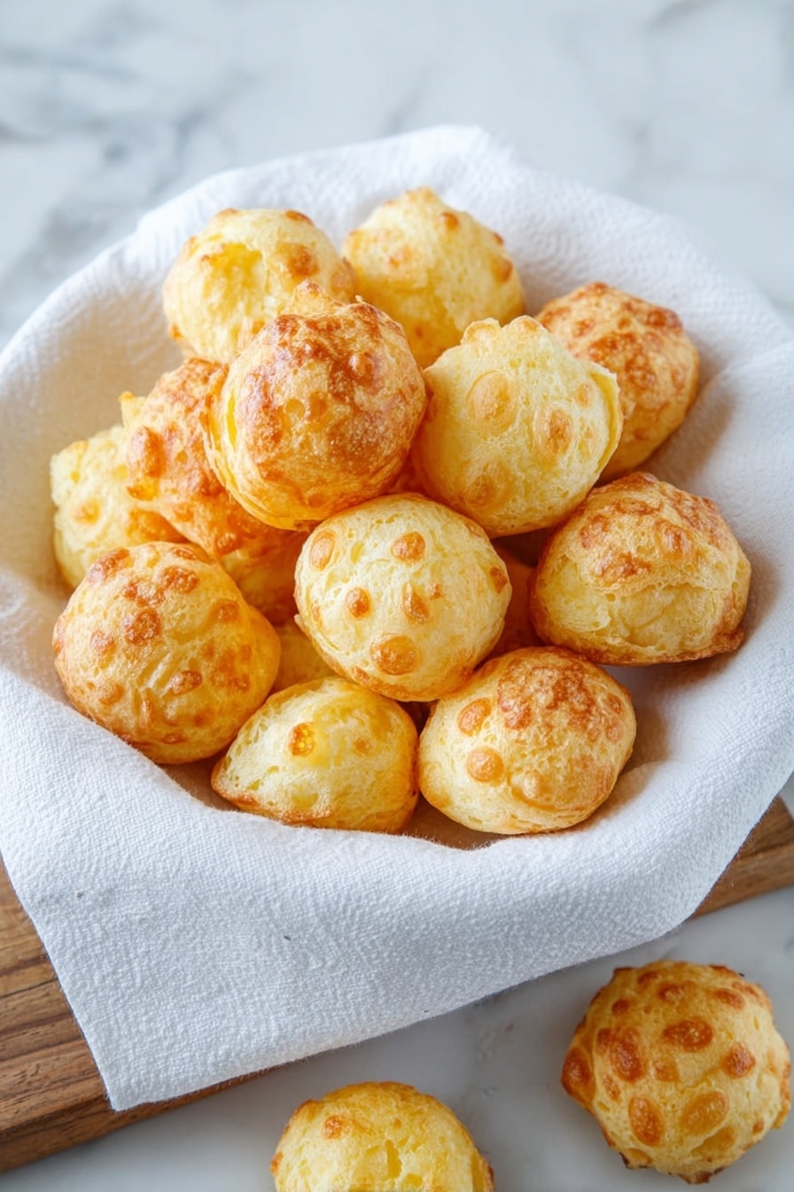 Gougères are delicate, airy French cheese puffs made from choux pastry infused with Gruyere cheese. Crispy on the outside and soft on the inside, they are perfect as an appetizer or snack served warm.