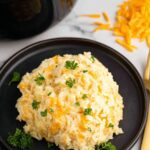 - Add Remaining Ingredients: Incorporate the shredded cheddar cheese (reserve a handful for topping), chicken broth, heavy cream, sour cream, onion powder, and salt into the bowl. Stir until all ingredients are well combined.